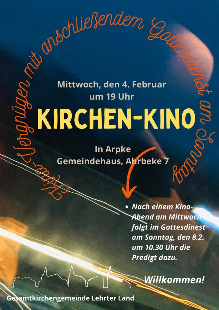 Am Mittwoch, 4. Februar findet im Gemeindehaus Arpke ein Kirchen Kinoabend statt. Der Film, der neu gezeigt wird, bildet die Grundlage für den Gottesdienst am 8. Februar um 10:30 Uhr.