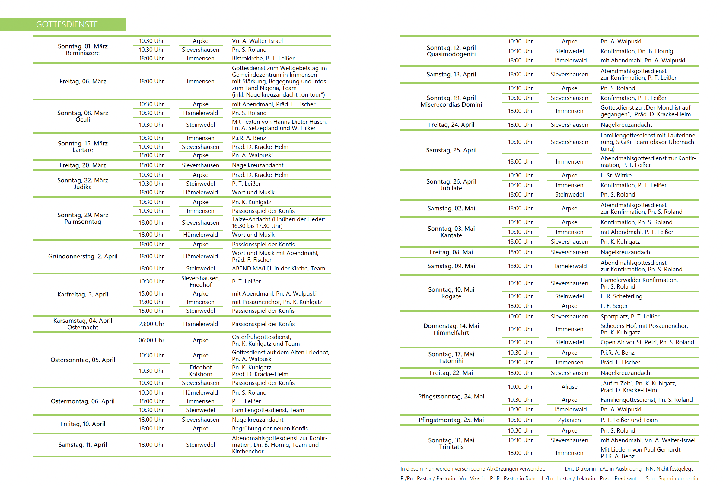 Na, mal wieder Bock auf Gottesdienst oder Andacht? Dann schau doch mal hier nach, wo und wann bei uns im Lehrter Land etwas angeboten wird. Wir freuen uns auf Dich!