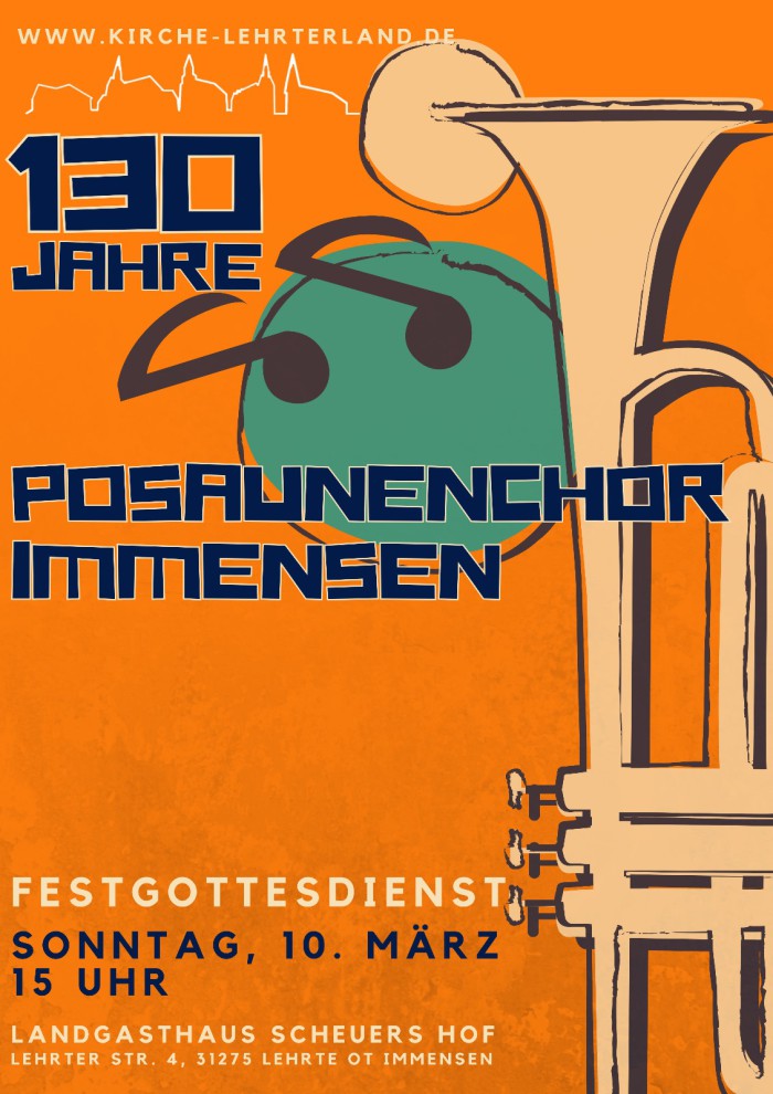In Immensen lĂ€sst der Posaunenchor bereits seit 1894 seine Töne und KlĂ€nge bei vielen in Immensen und in der Umgebung stattfindenden Veranstaltungen erschallen. Bei kirchlichen, weltlichen, traurigen und fröhlichen AnlĂ€ssen ertönt das breit gefĂ€cherte Repertoire des Chores. Viele Gottesdienste â z.B. zu Weihnachten, Ostern, Himmelfahrt â, manches runde JubilĂ€um oder hoher Geburtstag bekommen durch den Posaunenchor einen festlichen Charakter. Der Chor hat dabei unterschiedliche Einsatzorte, die von Kirche, ĂŒber Scheune bis hin zu Wald und Flur reichen. FĂŒr ihren Posaunenchor begeistern sich seit 130 Jahren immer wieder altbewĂ€hrte und neue BlĂ€ser!